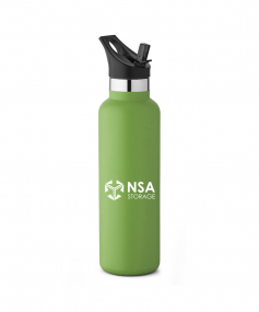 20 oz. Narrow-mouth vacuum-insulated bottle. Features a flip-top straw lid with ergonomic top finger loop. Keeps contents cold for 24 hours. Powder coat finish with copper lining, double wall 18/8 stainless steel, proprietary BPA-free insulated lid. Bottle comes with both screw-on lid and straw lid. 11" H x 2 7/8" Diameter.