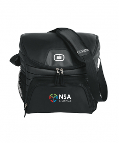 600D poly/420D diamond Dobby/PEVA lining. Adjustable, padded shoulder strap. Front zippered pocket. Dual side beverage/accessory holsters. Zippered, insulated main compartment holds 18-24 twelve Oz. cans. Capacity: 1,200 cubic in./19.6L Weight: 1.05 lbs./0.48kg. 11" H x 11.5" W x 8.5" H.